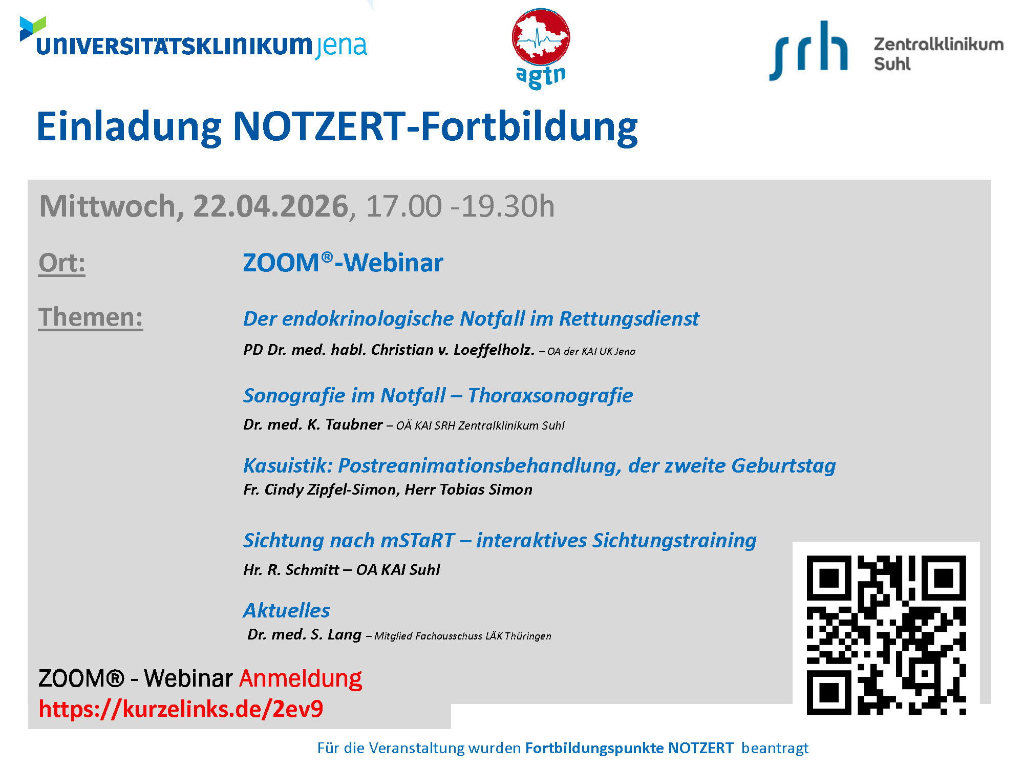 | Fortbildungspunkte | Fortbildungspunkte werden beantragt, NOTZERT |